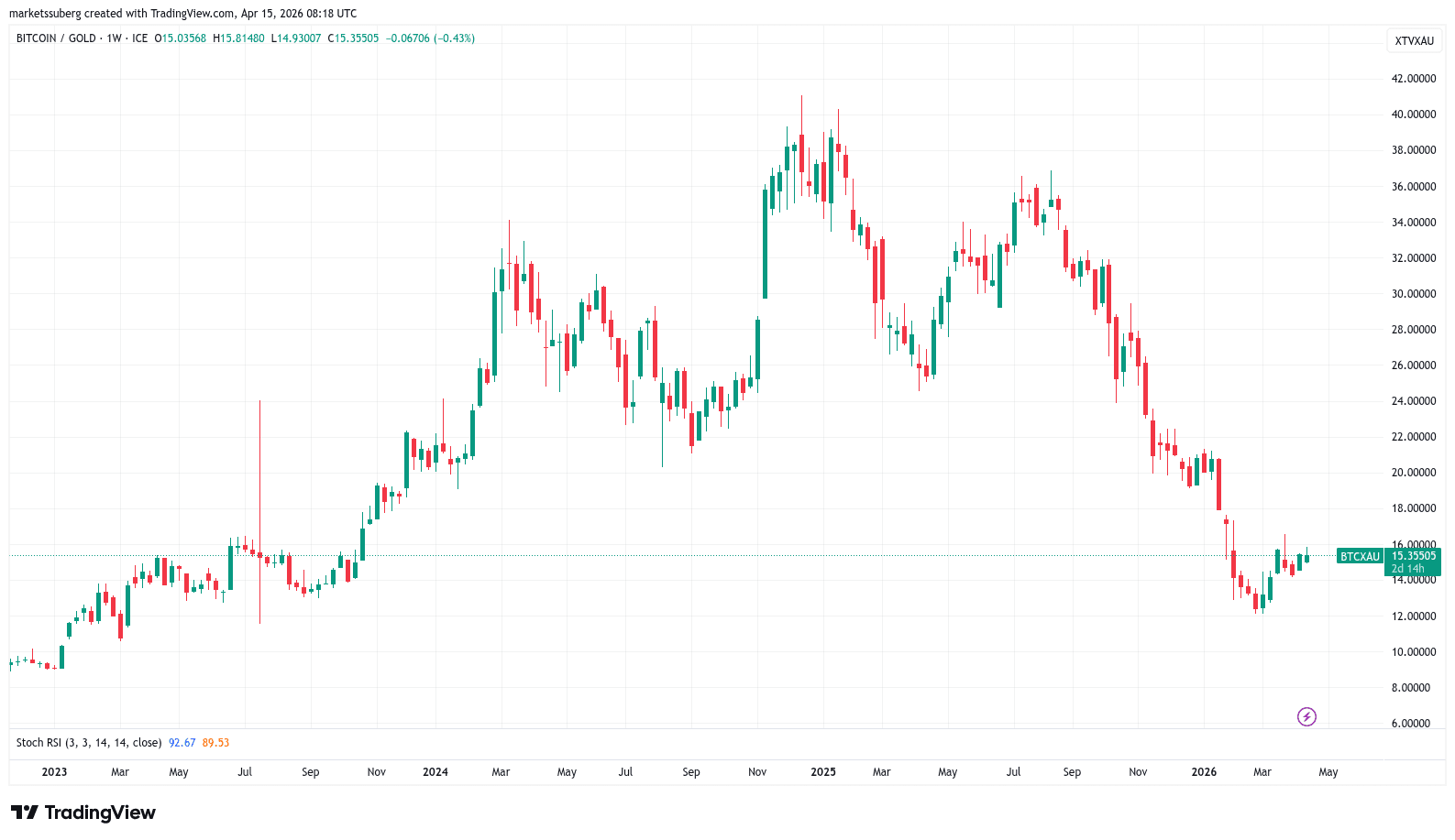 BTC/XAU one-week chart. Source: Cointelegraph/TradingView