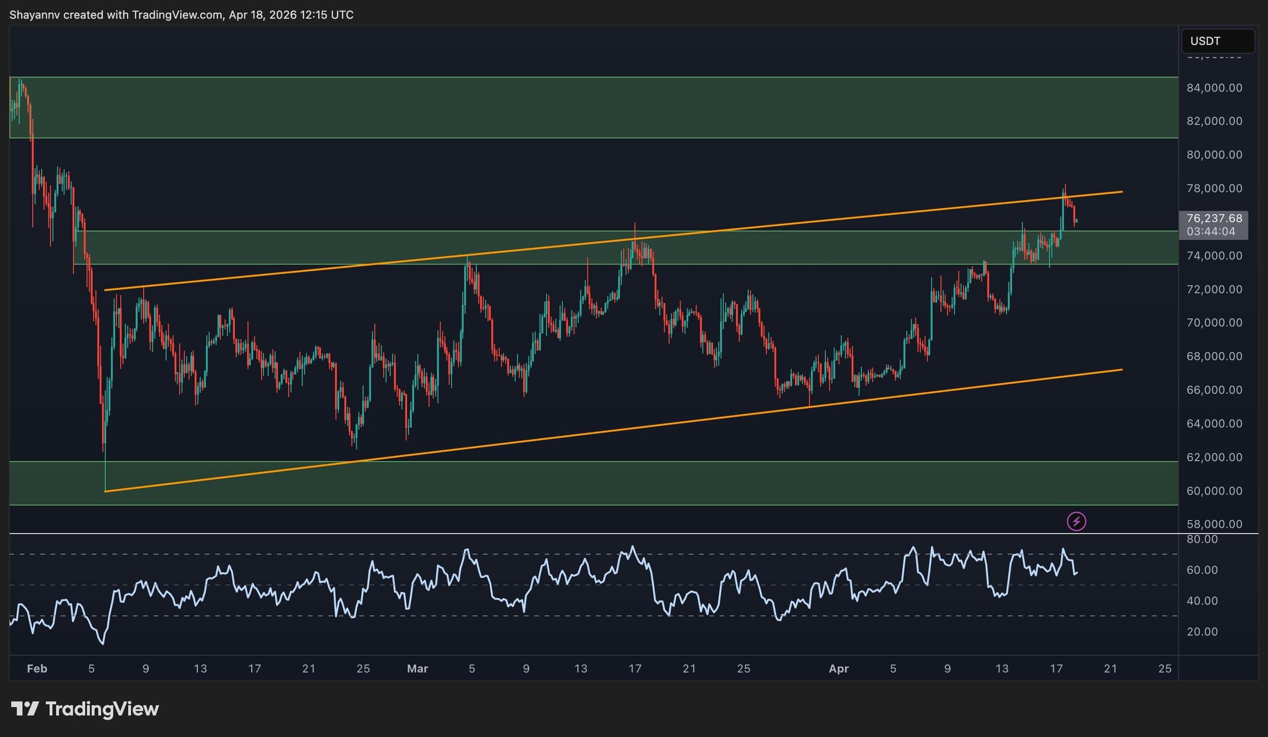The $75k–$80k resistance zone is crucial; if Bitcoin can establish this level as support, it could indicate a significant bullish trend.