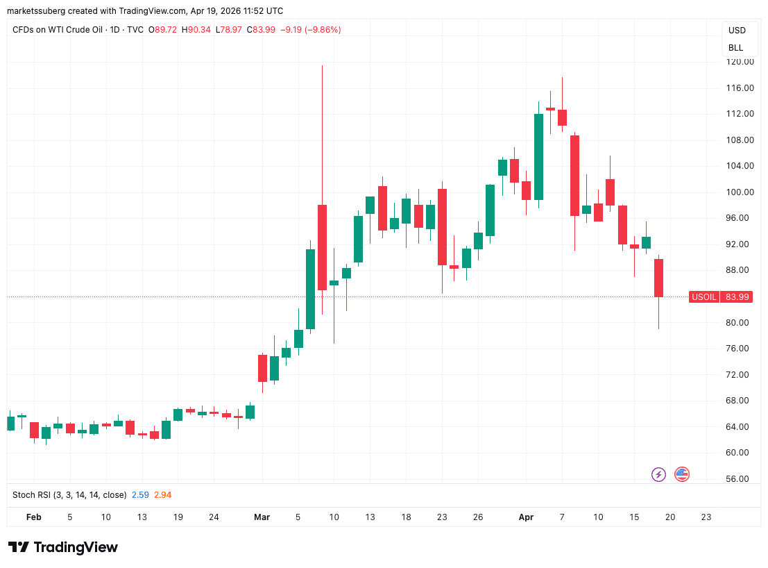 Among the latest developments was the repeat closure of the Strait of Hormuz, putting the focus on oil futures on the day. News of a ceasefire had sent WTI crude below $80 per barrel for the first time since March 10.