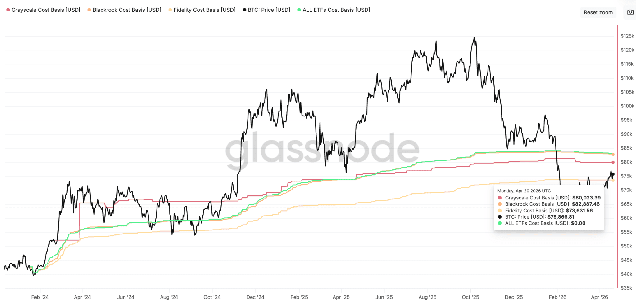 BTC: Average cost basis of US spot ETFs. Source: Glassnode