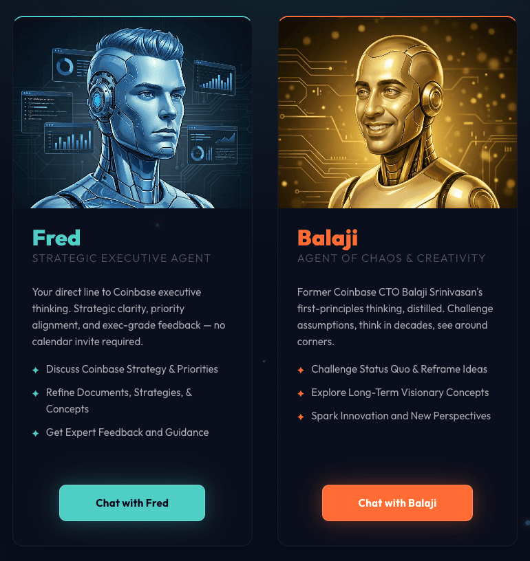 The other is Balaji, the agent of chaos and creativity who was modeled after Coinbase’s former chief technology officer, Balaji Srinivasan.