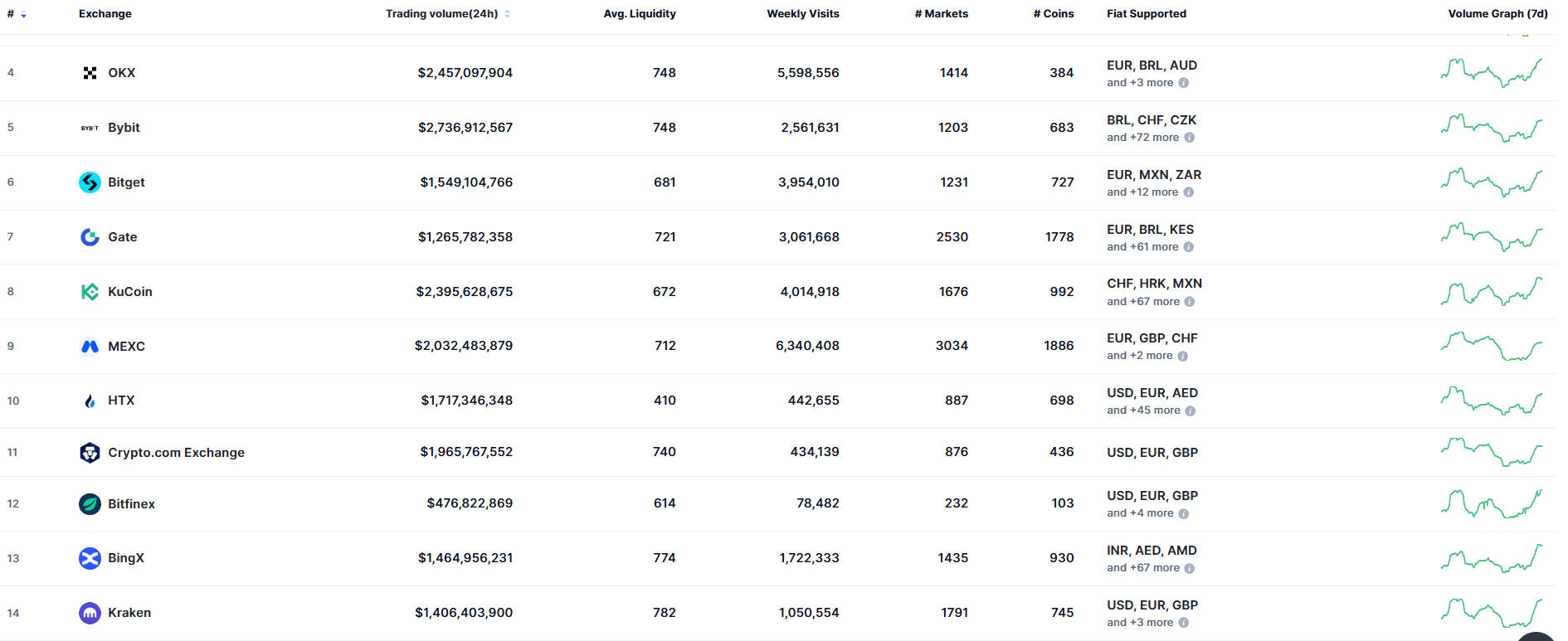 Top cryptocurrency exchanges by trading volume. Source: CoinMarketCap