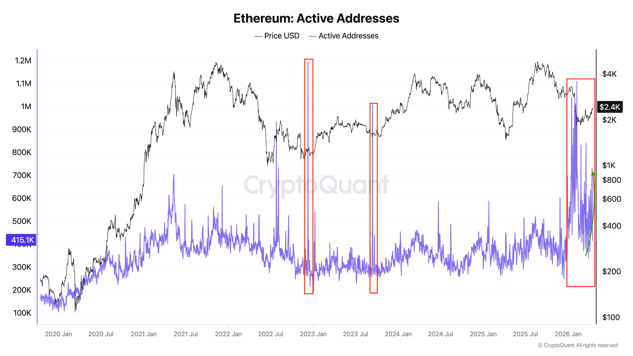 The increase in Ether accumulation wallet balances is linked to a significant rise in daily active addresses and a price rally to $2,400.