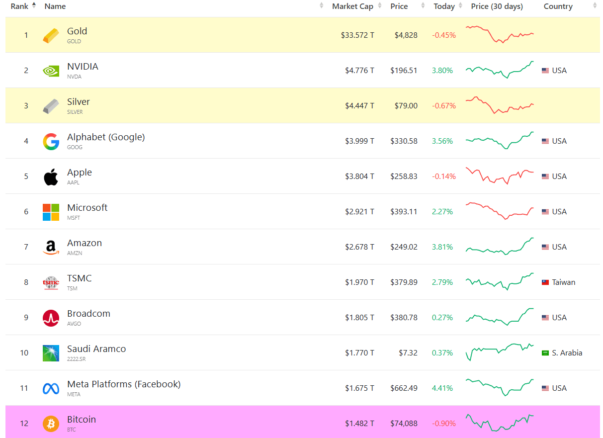 Top assets by market capitalization. Source: CompaniesMarketCap