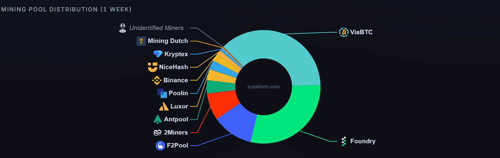 Foundry's Zcash mining pool controls approximately 29.2% of the Zcash network hashrate.
