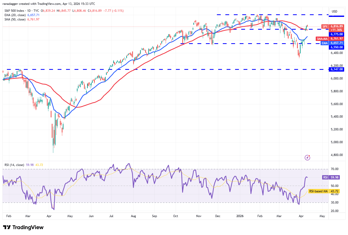 Price predictions 4/13: SPX, DXY, BTC, ETH, BNB, XRP, SOL, DOGE, HYPE, ADA