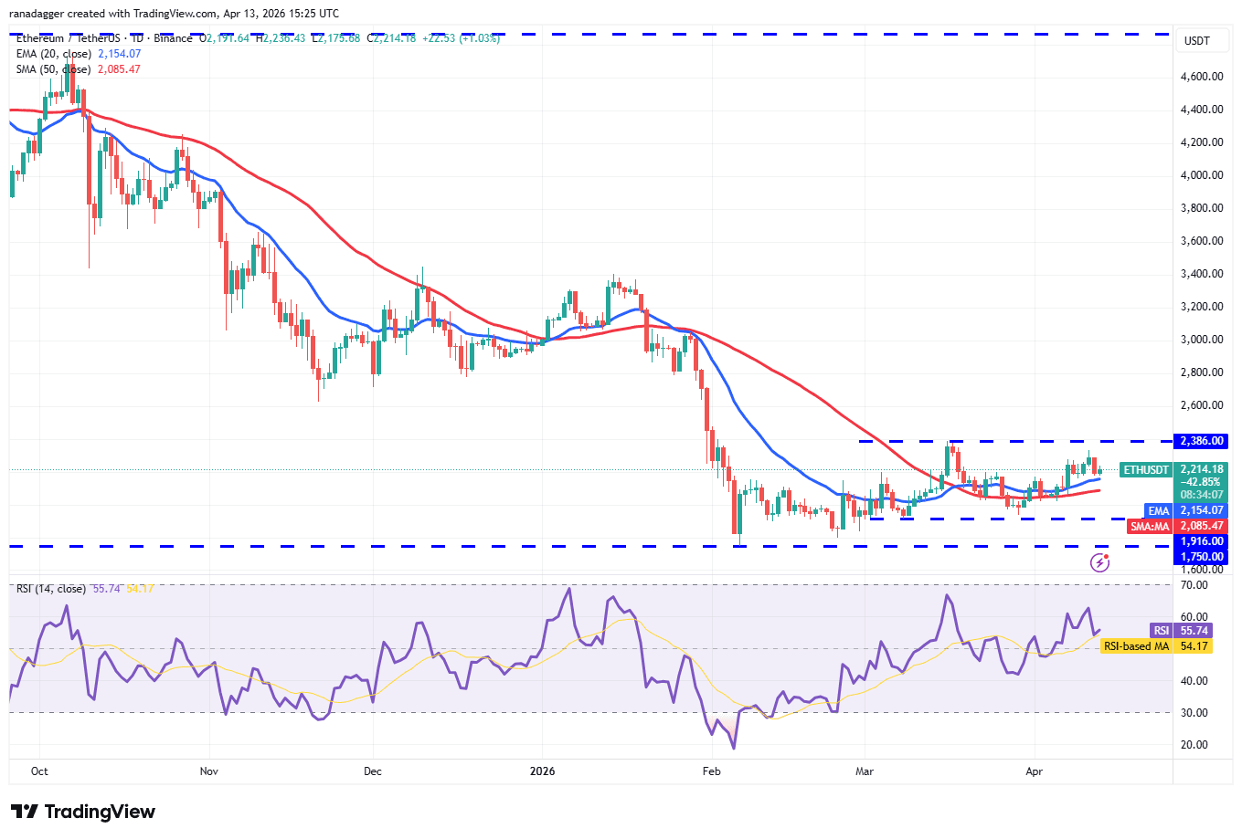 ETH has pulled back to the 20-day EMA ($2,154), which is a crucial support to watch out for in the short term.