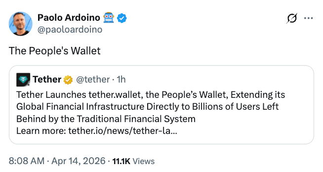 “With more than 570 million people already using Tether’s technology, the next step is making that digital infrastructure more accessible and usable for end users,” Tether CEO Paolo Ardoino said, adding that the objective is to remove wallet complexities that have prevented broader adoption.
