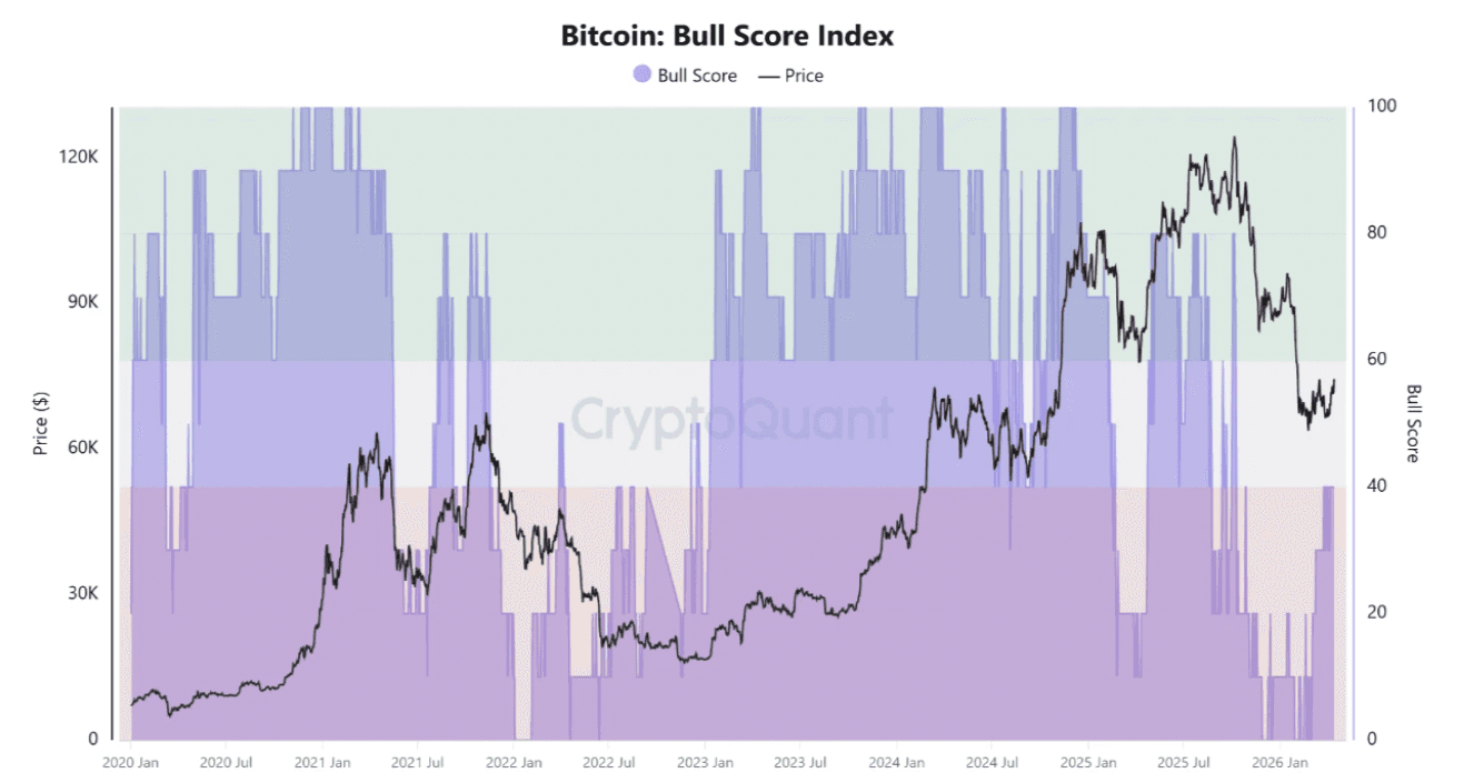 While the bull score index improvement to 40 “reflects relative stability in the market,” it must rise to an area of “strong optimism (above 60), which typically indicates strong bullish conditions,” CryptoQuant analyst Arab Chain said in a Quicktake post, adding: